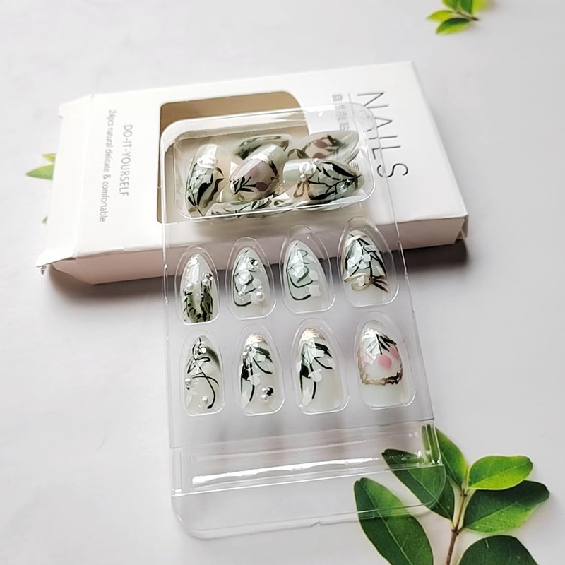 - Cute Press on Nails:There are 24 almond press on nails in one pack,Beautiful and cute press on nails false nails comes with has 12 different sizes,you can chose them to bepolished to the most suitable size,it fits any finger perfectly.