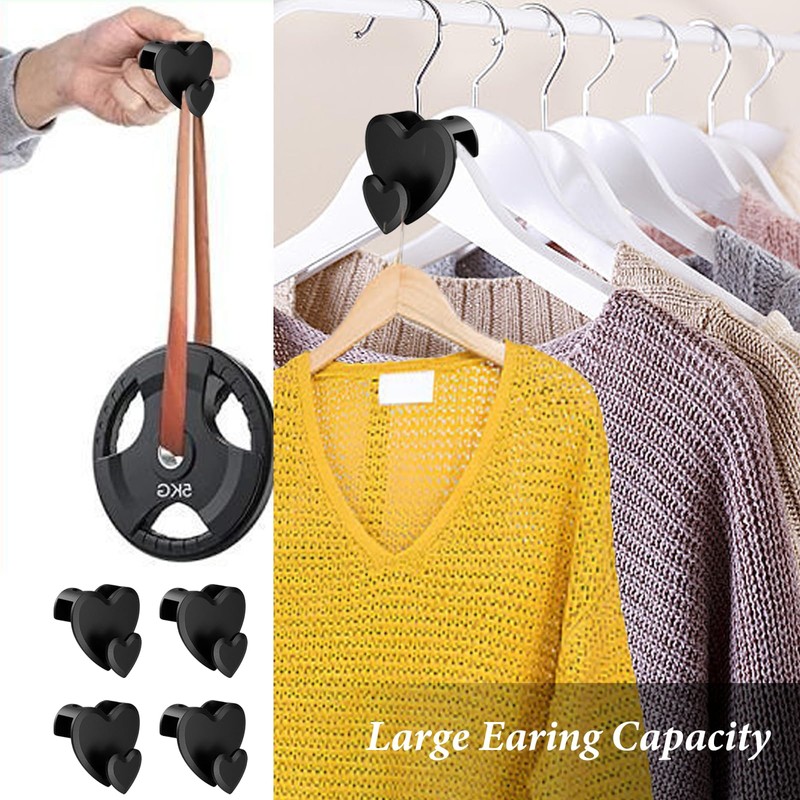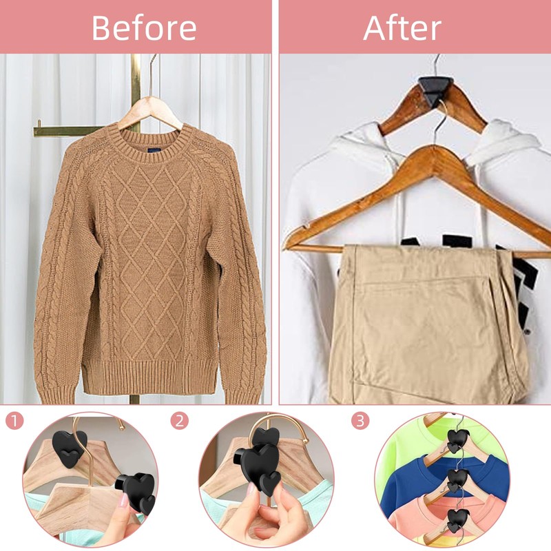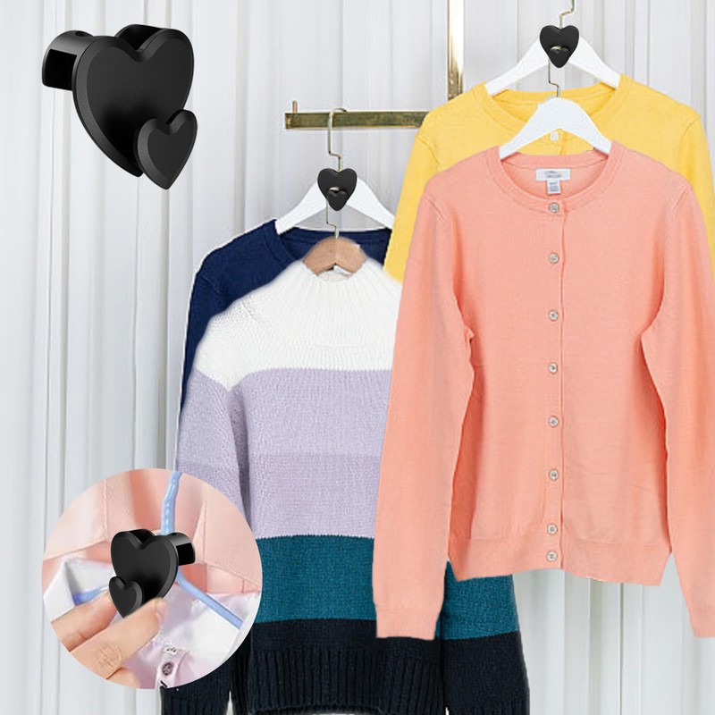 24 Pcs Heart Shaped Clothes Hanger Connector Hooks, Hangers for Clothes Space Savers, Super Space Saving Organizer Hanger Hooks Wardrobe Organise, for Various Closets and Cloakrooms (Black)
