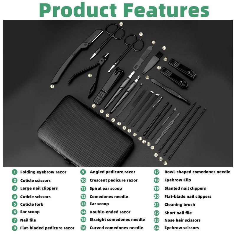 Black 24-Piece Manicure & Pedicure Set in Black – Your Complete Nail Care Solution