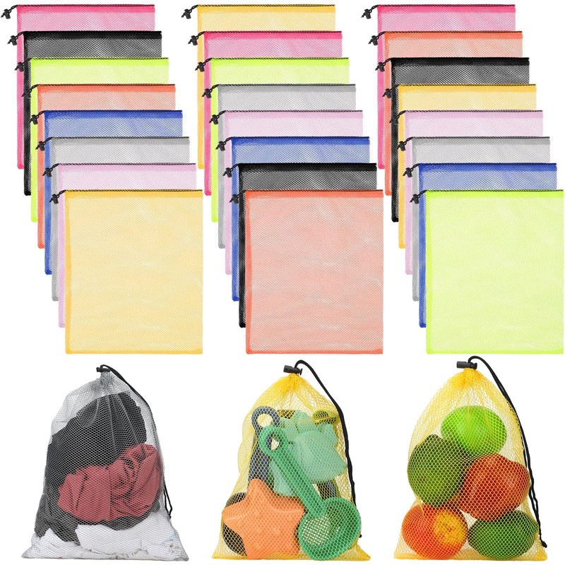 - Sufficient Amount and Vibrant Colors Available: you will receive 24 pieces small mesh bags in 8 different colors, namely black, red, dark green, orange, purple, royal blue, yellow and fluorescent green, and each is approx. 20 x 30 cm/ 8 x 12 inches, which can store and carry a variety of stuffs