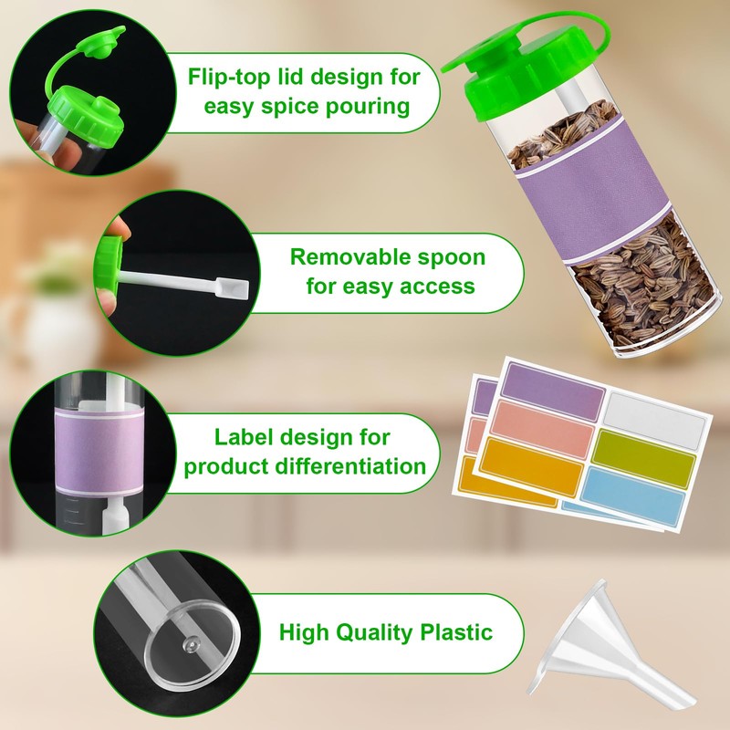 🔸 Mess-Free Organization – Labels help you quickly identify different seasonings.