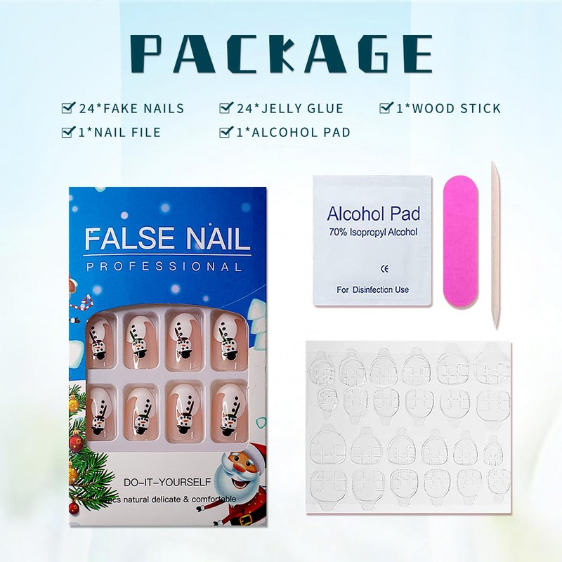 - ⛄【Versatile Set】: These winter Christmas holiday fake nails set contains 24 pieces of press-on fake nails in 12 sizes, ensuring a perfect fit for every nail size and shape. Additionally, we provide 24 pieces of jelly glue, 1 nail file, alcohol cotton, and a wooden stick to assist you in the application and removal process. With everything you need in one convenient package, achieving a flawless manicure has never been easier.