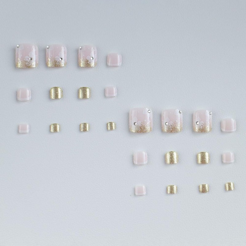 24 Pcs Pink Press on Toenails Short Square - MINGCHUN Summer French Fake Toe Nails Art Tips with Flowers Gold Glitter Rhinestones Full Cover False Nails Glue on Nails for Women Manicure Decorations