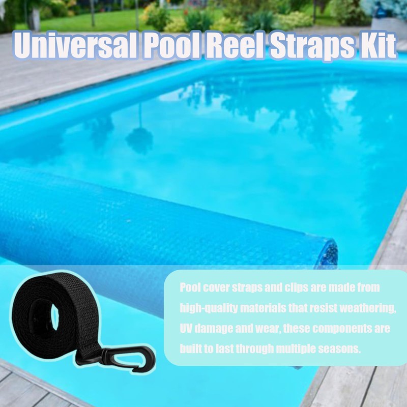 - [ Universal Pool Reel Straps Kit ]: This solar cover fastening kit can be rotated to adjust, it can be adjusted up to 0.6 inch at most to fit any pool solar cover, from 8mm to 16mm in thickness.