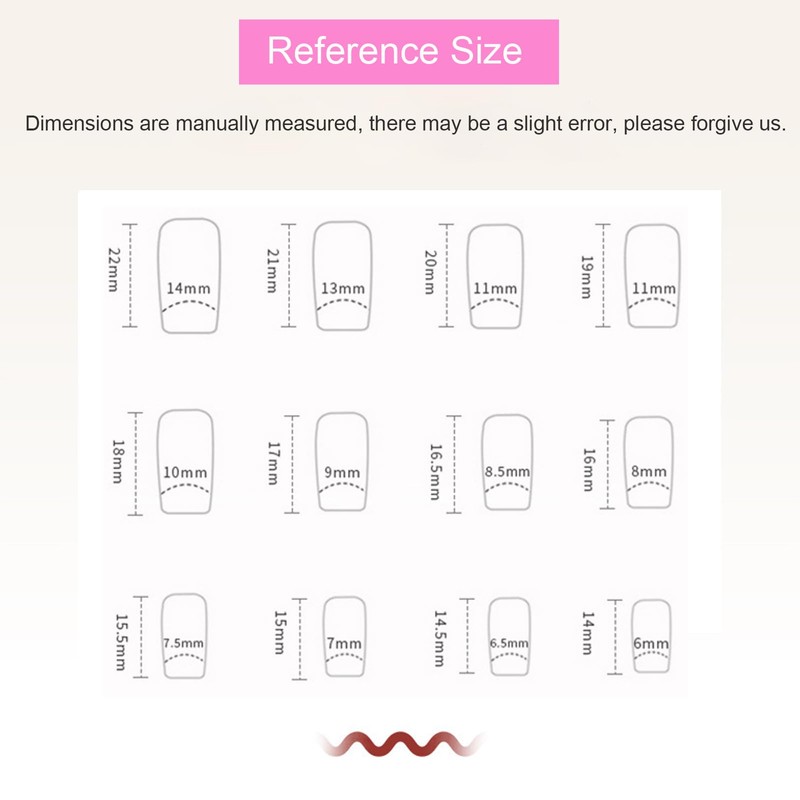 - 🌺【Easy to Operate】Easy to install and operate, beginner friendly, after choosing the right size fake nails, with double-sided jelly glue and nail file, you can finish the salon effect nail art in 3 minutes.