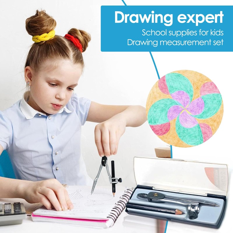 Material: High-quality PP plastic, metal compass, smooth gel ink pens