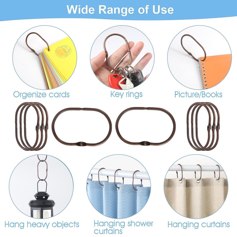 • [WIDE APPLICATION]: The simple, attractive and snap-on design gives the bronze shower curtain rings many possibilities, not only for shower curtains, but also for curtains, DIY loose-leaf, organizing tools, key rings, scrapbooks and more.