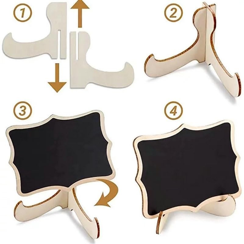 - Warm notice: The holes are designed to be small for the sticks, if the base of the small blackboard is not tight, then the small blackboard can not stand. As for if you can not plug into the base, it does not matter, as long as you plug in a little bit, and the chalkboard can stand up