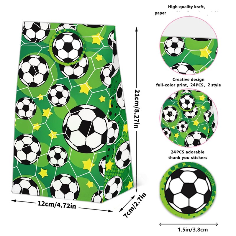 - Soccer Themed Favor Bags : Includes 24 Soccer -themed party favor bags and 24 matching stickers,Each bag features offering an ample quantity to meet your requirements, whether for party decoration, making them easy to carry.