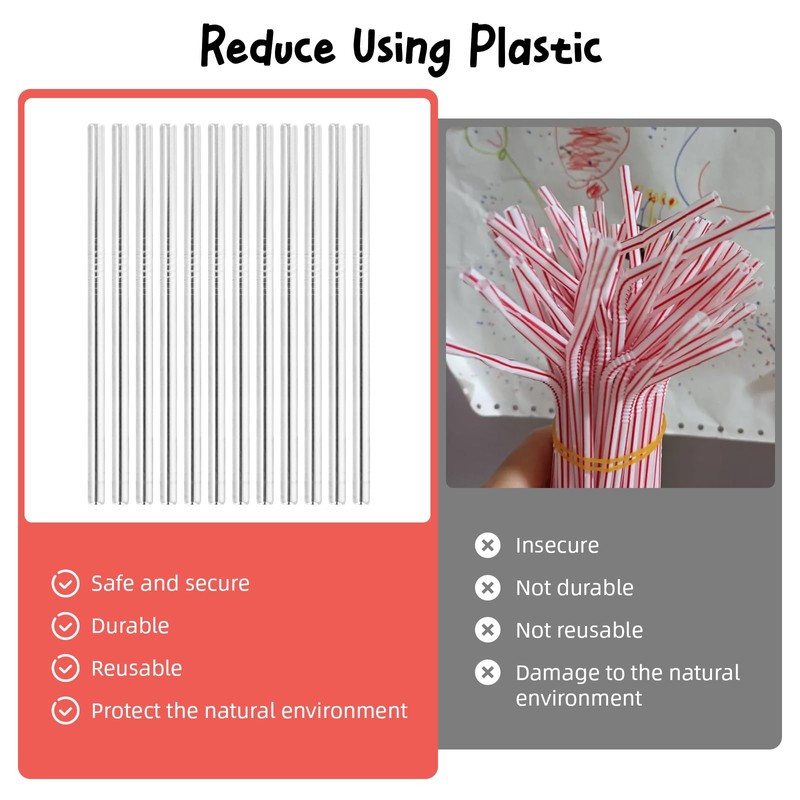 - 2. Invest in our reusable straws made of stainless steel that are highly durable and a perfect alternative to single-use plastic straws.