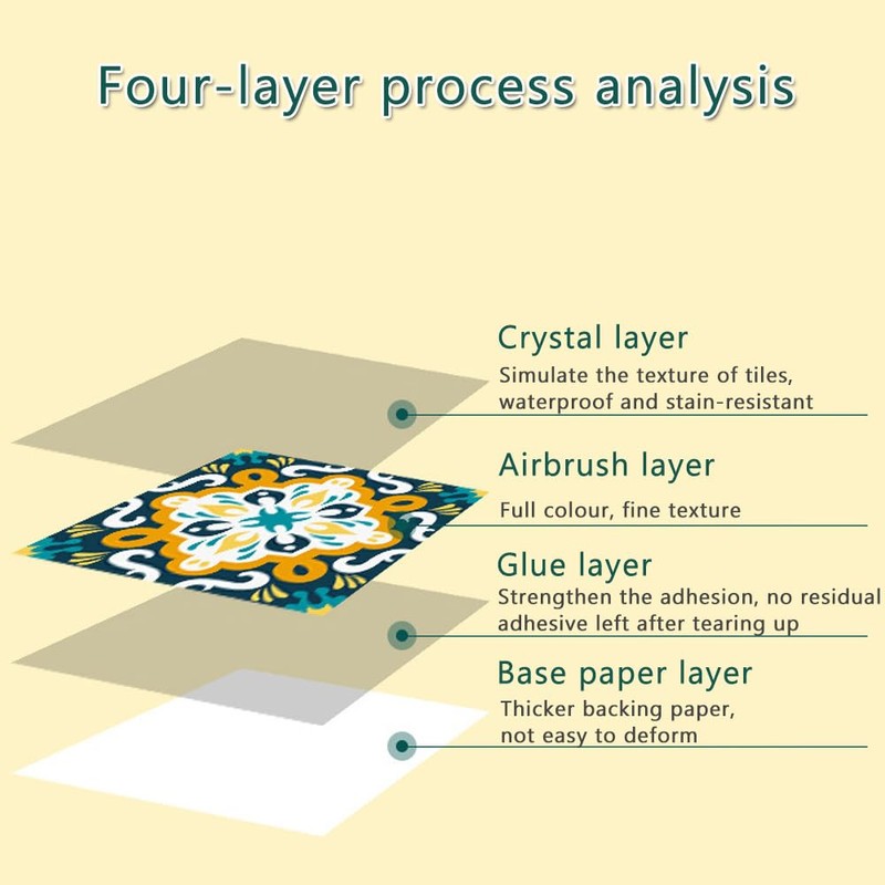 - 【Material】The wall tile stickers are made of environmentally friendly PVC material, with a frosted matt surface, non-slip and wear resistant, not easy to damage and fade, water and oil resistant, stains can be easily removed with a wet rag.