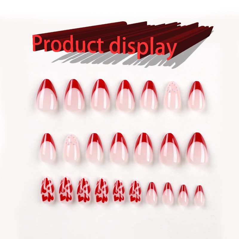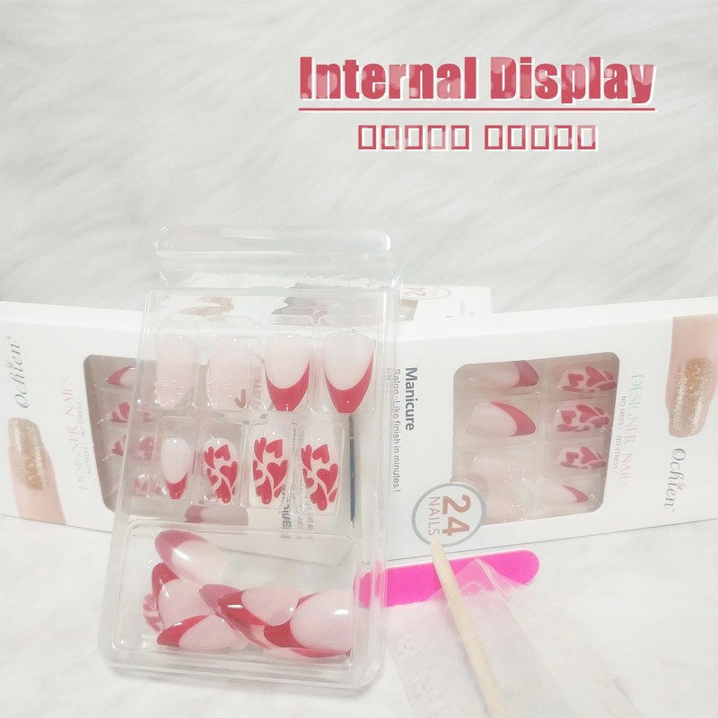 - 【Fake Nails Package Contains】 24 Pcs Valentines short-medium false nails, 24 pieces of jelly glue, 1 mini nail file, 1 wooden stick. (Durability of jelly glue is not as good as liquid glue, but it makes fake nails reusable. Please use your suitable glue according to different scenes)