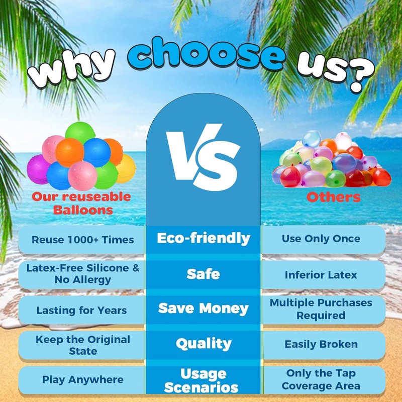 - Environmentally Friendly: Reusable water balloons help reduce plastic waste generated by single-use water balloons, making them a more sustainable choice for outdoor water play.
