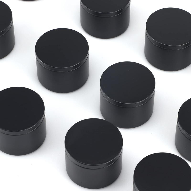 The candle tins is made of tinplate,Print with black color , environmental protection, not rusty, lightweight shape, easy to carry. Please note that not use the tin containers to store liquids.