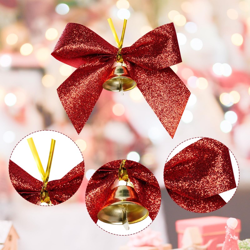 - Special Design:glitter wreath bows for decorating look shining and are tied with little gold bell in middle, and the bells usually mean of celebration,which make these twist tie bows enough delicate and make people more quickly feel and enjoy celebrating the holidays