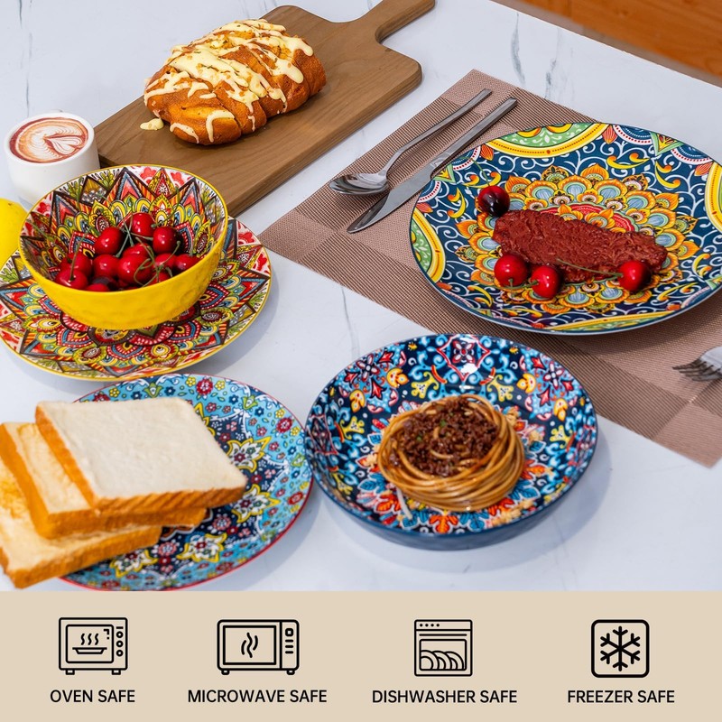 - 🏡【Microwave and Dishwasher Safe】Corlorful Dinnerware Set is suitable for microwave, oven, dishwasher and refrigerator, and the smooth glaze of the plates makes them easy to clean, whether by hand or in the dishwasher.providing practicality alongside their beauty.