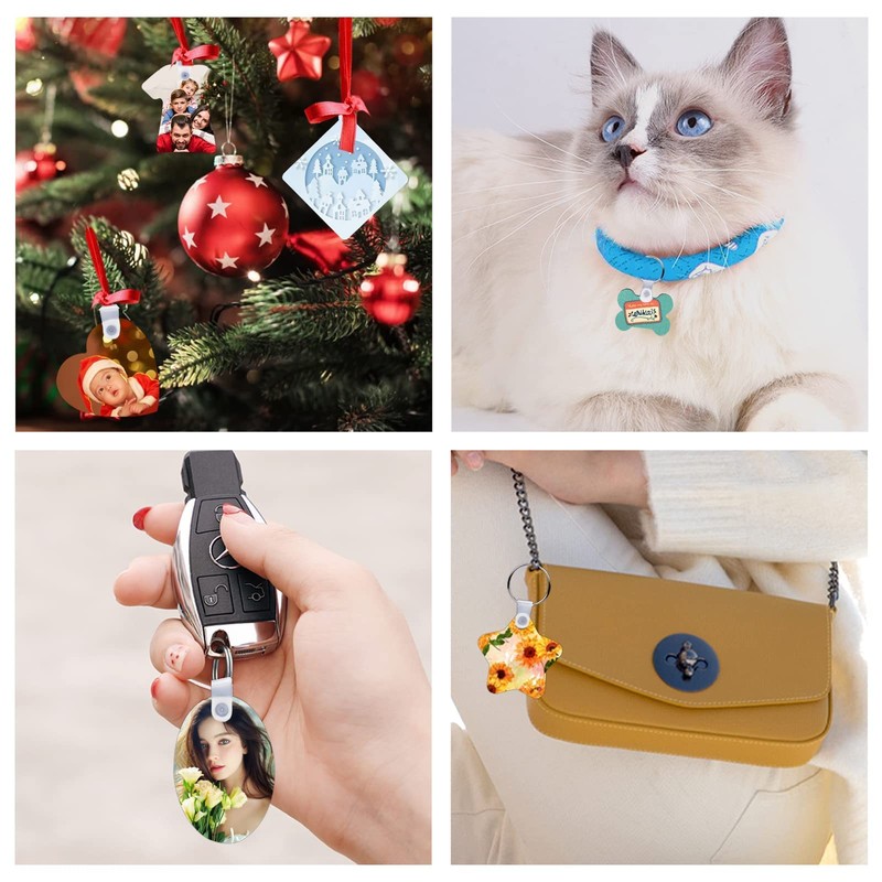 Suitable for DIY sublimation key chains, zippers, backpack bag tags, pet tags, gift tags, festival ornaments, pendant decoration, souvenirs and many other craft projects.