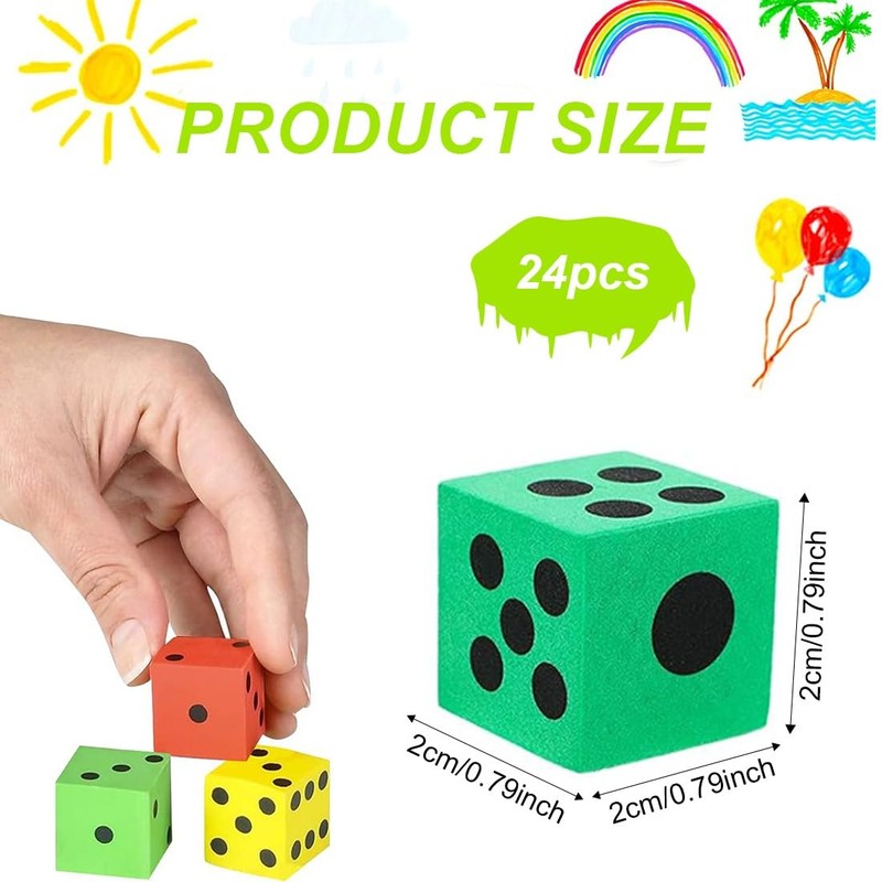 24 Pieces Foam Dice Whisper Cube Educational Toy 2cm Foam Cube Color Cube Nursery Preschool School Classroom Math Games