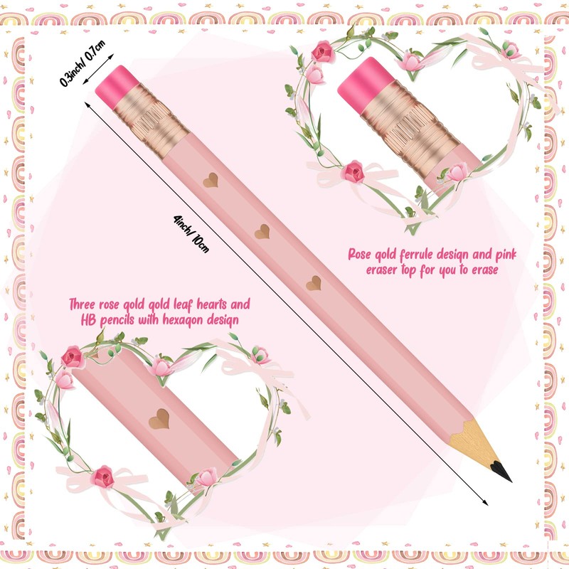 - Appealing Appearance: each package comes with 24 pieces bridal shower pencils, measuring approx. 3.93 x 0.28 inches/ 10 x 0.72 cm, adequate to satisfy your diverse needs; In addition, the exterior rose gold ring and 3 rose gold hearts make your pencils more cute and attractive