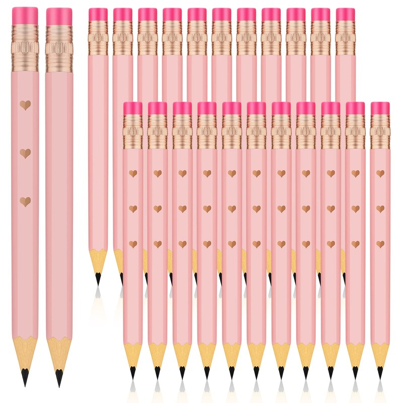 24 Pieces Pink Baby Shower Pencils Bridal Shower Golf Pencils with Erasers Mini Half Pencils Pre Sharpened 4 Inch Wedding Pencils 2 HB Hexagon Pencil for Kids Party Favors Office School Classroom