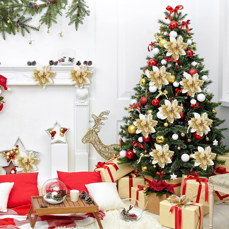 - Versatile usages: the artificial glitter flowers are suitable for Christmas tree and Christmas wreath, you can also hang them on your windows and doors, attach them on your Christmas eve candle centerpieces, or even use them as costume accessories
