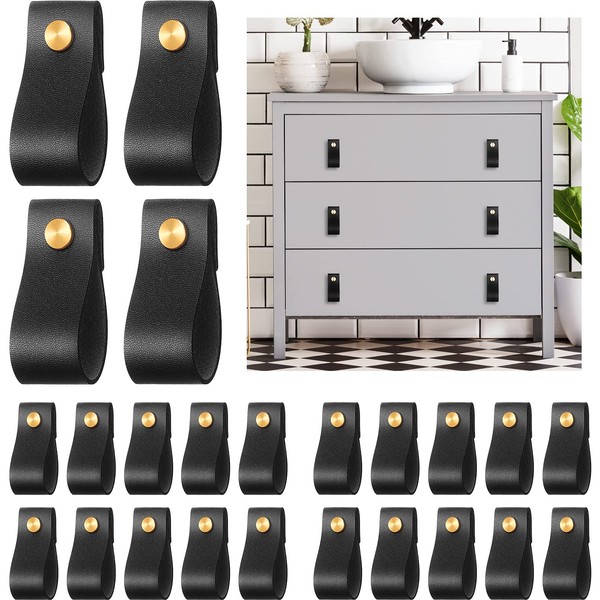 - Quantity and size details: you will receive 24 pieces of PVC leather pulls in black, and there are also 24 pairs of brass screws; These PVC leather knobs pulls are well suitable for the drawers with the thickness of 13 - 22 mm, and they are fit for 5 - 9 mm thick drawers as well