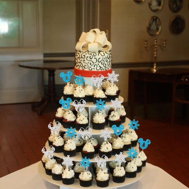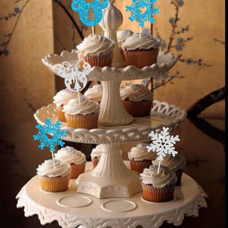 - El paquete incluye: 24 adornos para cupcakes de copo de nieve de mouse. Estos adornos para cupcakes de copo de nieve de mouse son muy agradables y suficiente cantidad para tu uso. Perfecto para fiesta de cumpleaños temática de copo de nieve