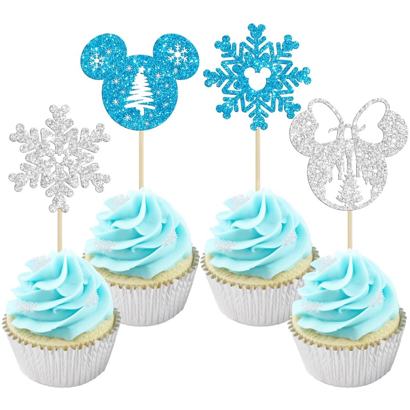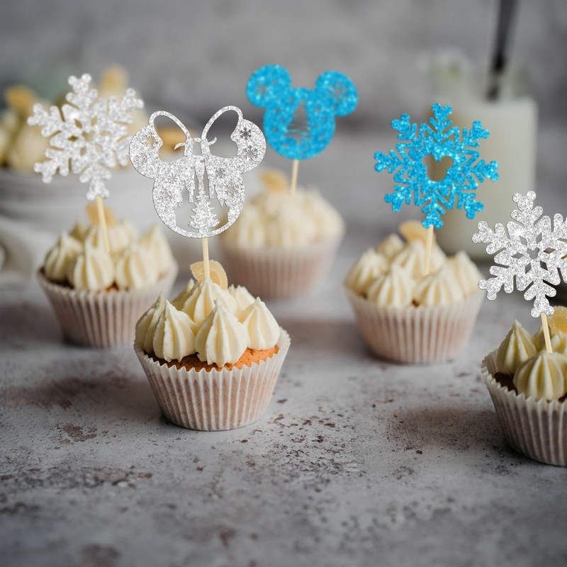 - El paquete incluye: 24 adornos para cupcakes de copo de nieve de mouse. Estos adornos para cupcakes de copo de nieve de mouse son muy agradables y suficiente cantidad para tu uso. Perfecto para fiesta de cumpleaños temática de copo de nieve