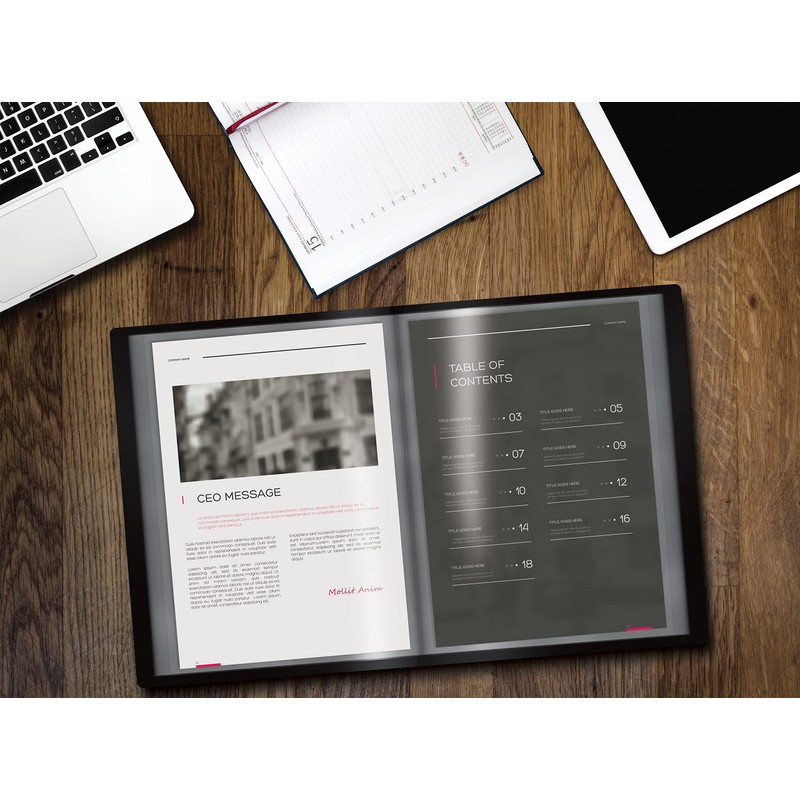 - ACCOMMODATING: Each pocket holds back-to-back sheets for times when a book-style presentation is preferred to a front page only display.