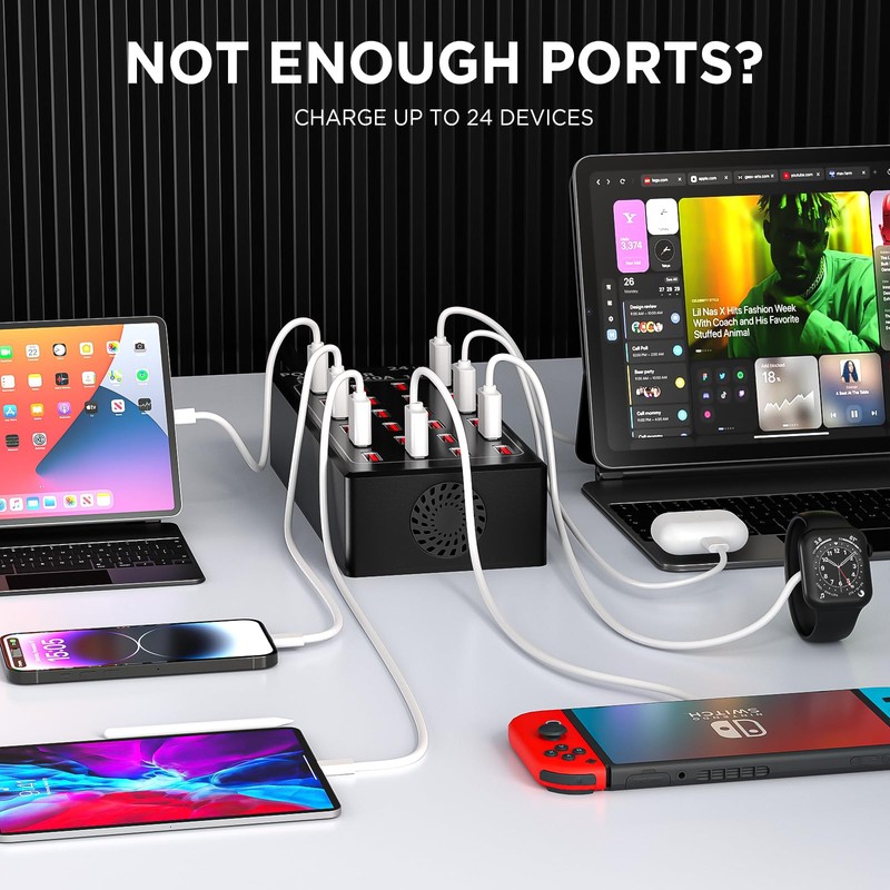 - 【24 in 1 USB Charging Station 】If you find yourself needing to routinely charge more than 20 devices at once, this 24-Ports charging station for multiple devices is an exceptional charging solution, creates a very organized all-in-one usb charger station with high speed charging.