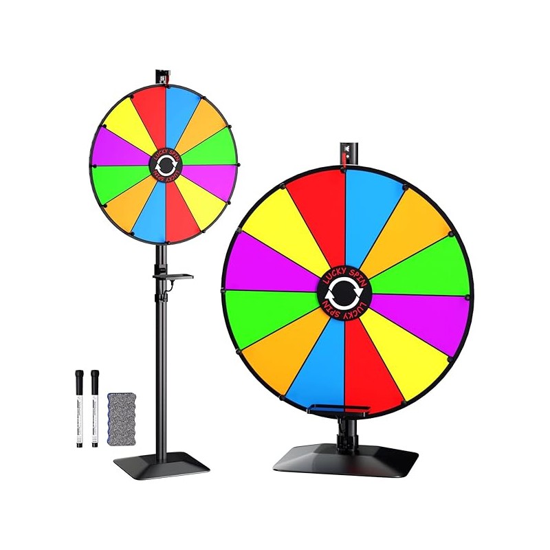 24" Prize Wheel - Dual Use Tabletop or Height Adjustable Floor Stand Heavy Duty Spinner Wheel of Fortune with 12 Slots & Dry Erase & Eraser for Carnival, Trade Show, Fortune Spinning Game