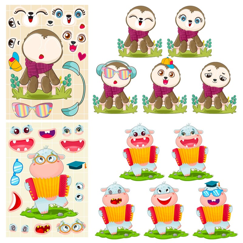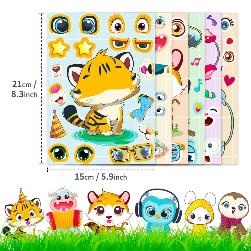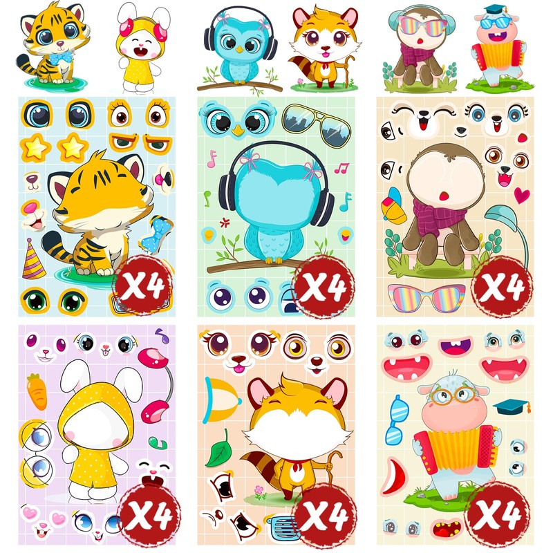 24 Sheets 8.3''×5.9'' Make-a-face Sticker,Egg Easter, Dog, Movie Hero, Mermaid, Zoo Animal,Sea Animals for Kids Party Favors Activities,Goodie Bags Stuffers for Kids, Classroom Rewards。 (T01041018)
