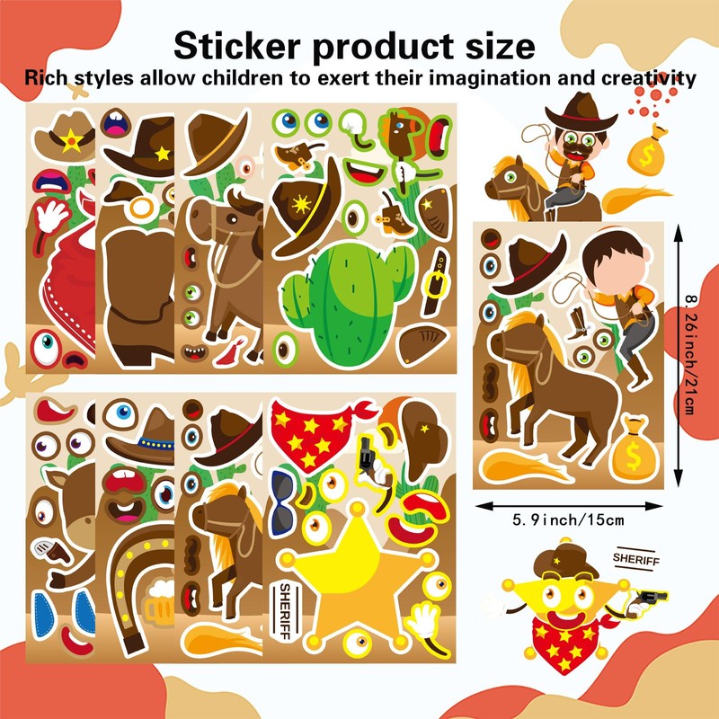 - Make Your Own Cowboy Stickers:Let your little cowboy 's creativity run wild with this DIY sticker set featuring horses, cowboy hats, boots, lassos, and Western-themed accessories. Perfect for boy who love horses, farm animals, and wild West adventures!
