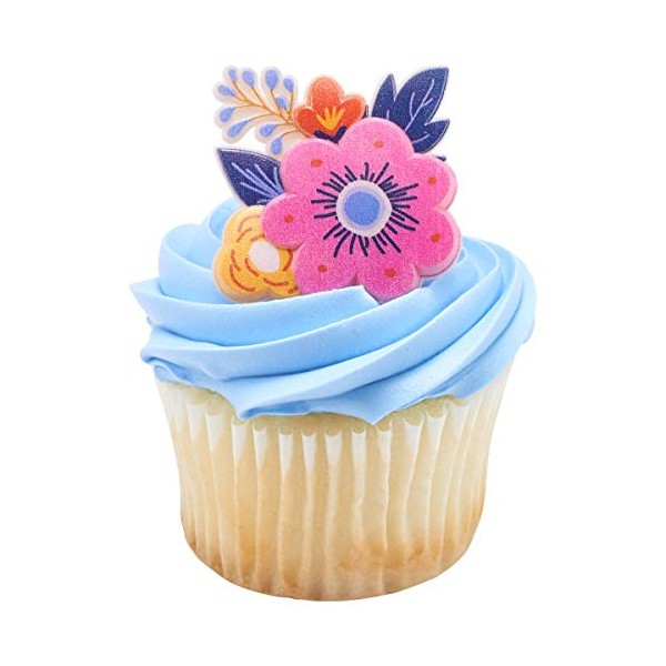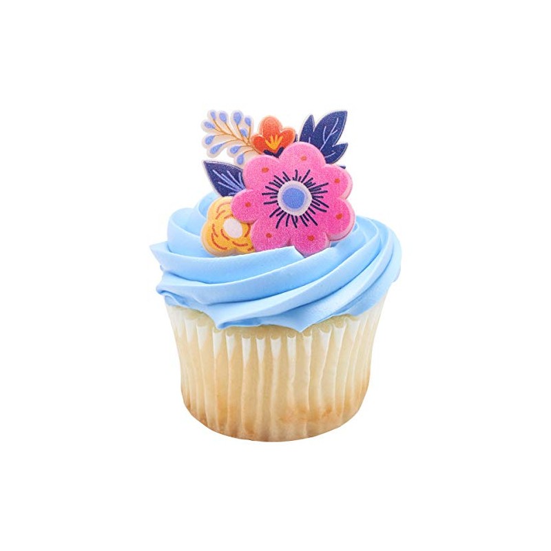 24 Spring Floral Flower Cupcake Rings Topper