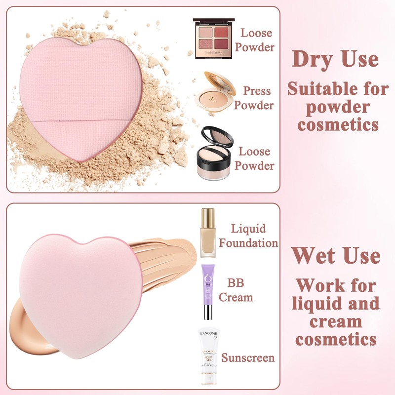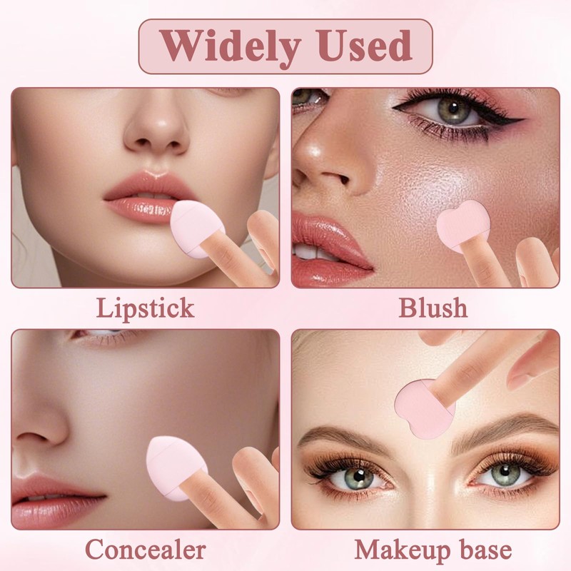 - 【Niedliches Aussehen】Dieses einzigartige finger puderquaste-design ist nicht nur schön und modisch, sondern auch voller romantik. Durch dieses erscheinungsbild passt sich schwämmchen powder puff besser den gesichtskonturen an, sodass sich auch schwer erreichbare bereiche wie nasenflügel, augenwinkel und mundwinkel leichter schminken lassen.
