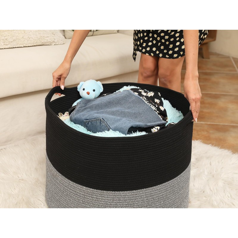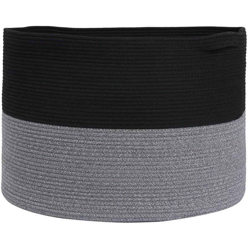 24" x 24" x 17" Max Size Large Cotton Rope Basket, Extra Large Storage Basket, Woven Laundry Hamper, Cloth Storage Bin, for Blankets Clothes Towels Pillows in Living Room, Black/Grey Mix
