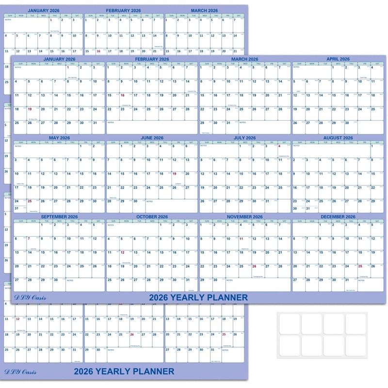 24" x 36" 2026 Wall Calendar, Folded Wet & Dry Erase Wall Calendar 12 Month, Yearly Laminated Calendar, Reversible Annual Planner, Horizontal/Vertical, with Julian Dates