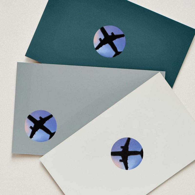 24 x 40mm Round 'Airplane Silhouette' Stickers (SK00065334)