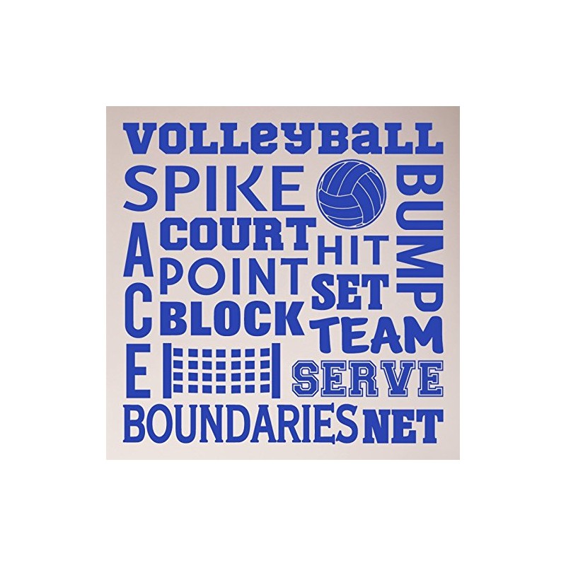 24"x24" Volleyball Sports Sayings Collage Spike Team Serve Set Net Ace Team Block Bump Court Point Boundaries Wall Decal Sticker Art Mural Home Decor School Girl Love