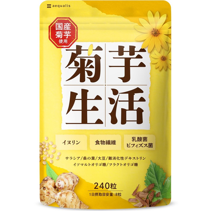 菊芋生活 国産 菊芋サプリメント イヌリン 食物繊維 サラシア 難消化性デキストリン 240粒入り 30日分 (1)