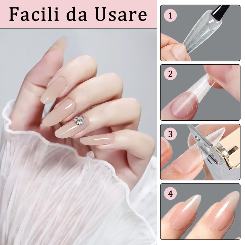 - ✨Easy to use: with our range of artificial nails, we guarantee stress-free application thanks to their ease of use. Simply choose the desired shape, apply the gel to the mould and gently press on the natural nail for 5-8 seconds. Our intuitive technology allows for quick curing with an LED light, making the process fast and efficient.