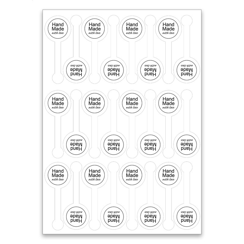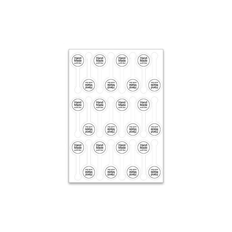 - These are 35mm wide and 90mm tall. These are a beautiful and simple design, our stickers are all white background with “hand made with love” in blank.