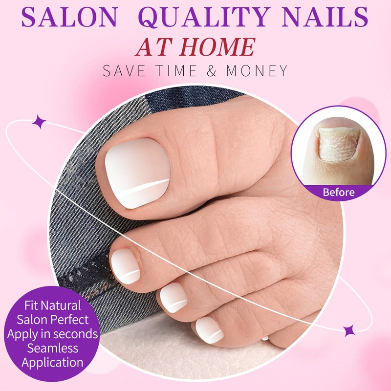 - Comfortable and Secure Fit: Short toe nails press ons ombre mimic the look and feel of natural toenails. Square acrylic toenail tips short are designed as ombre glue on toe nails for women, girls, ombre toes press on nails for women provide a snug and secure fit. Ombre press on toe nails ensure a perfect alignment with your natural toenail bed, whether you're walking, dancing, or simply relaxing, toe press on nails ombre toes stay in place. Ombre toe nails press on nails make you to move freely without worrying about ombre toe press ons toes slipping off.