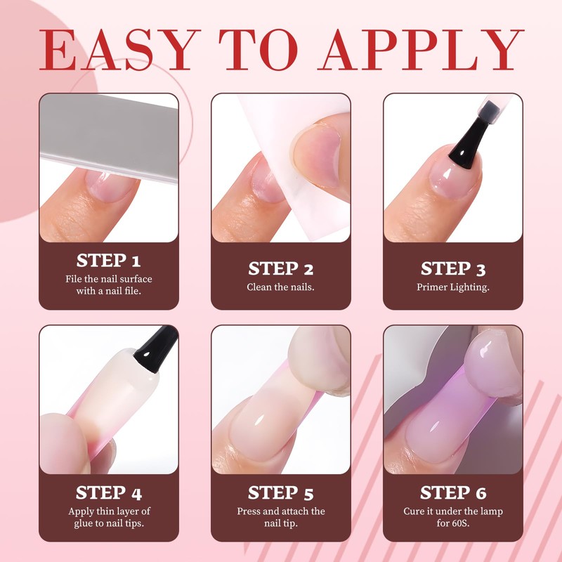 Pink and white press on nails hygiene: clean & safe fake nails with nail glue