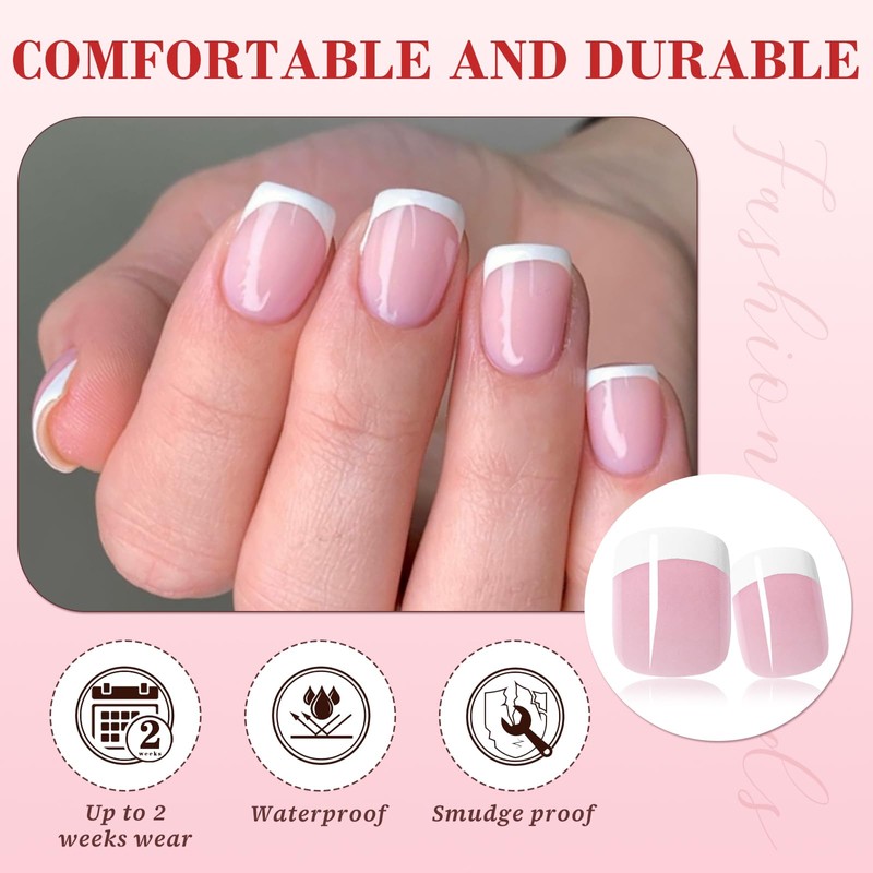 - Ideal Gift Press on Nails Kit: Short fake nails press ons french tip are suitable for casual days or formal events. French tip false fingernails short are great nail gift for mother's day, birthday, wedding, Christmas, Valentine's day, thanksgiving, date or Easter to your mom, wife, daughter, sister, girlfriend, grandma, best friend etc. Square pink nails press ons french tips offer a versatile look that complements any outfit. Square artificial nails short length arrived in beautiful packaging, short press on nails french tips are easy to gift and perfect for sharing with friends and family.