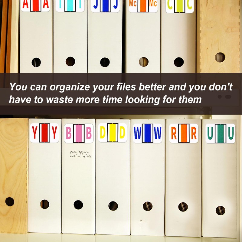 • Wide Application: These alphabetical labels are suitable for those who want to organize charts and filing systems, helping speed up document retrieval time and reduce misfiled records. They are easy to use, just peel and stick, making your fingers enjoy the comfortable feel of matte surface and rounded corner.