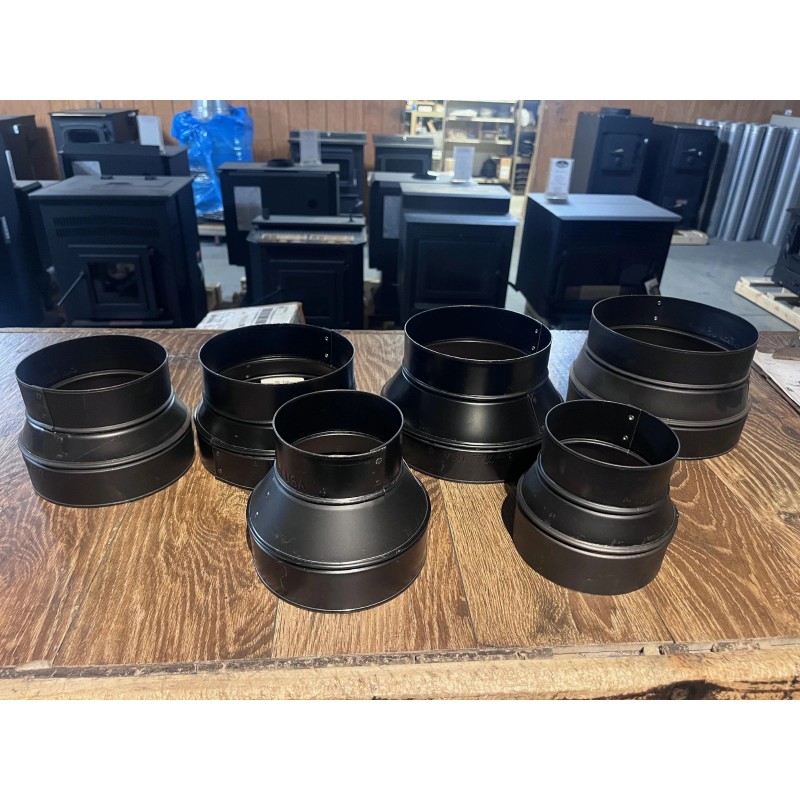 24ga Black Stove Pipe 6" to 5" Reducer/Increa - Crimp 5" End