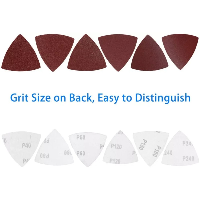 24h-USA Warehouse Shipping 100PCS Triangle Sanding Pads for Oscillating Multi-Tool Hook Loop Sandpaper Disc Abrasive Toolmaterial: Aluminum Oxide, grit: 40/60/80/120/180/240