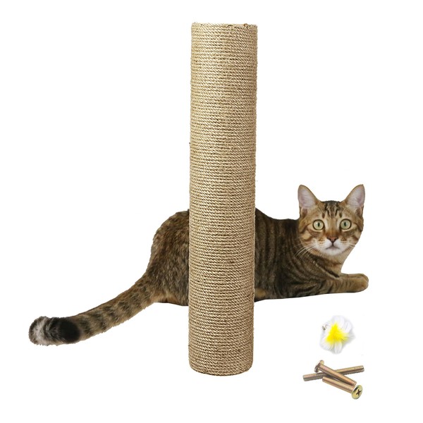 24inch Natural Wood Sisal Cat Scratching Post Replacement Pole Part for Tower Climbing Scratcher Large 3.54" Dia,DIY Cat Tree Pole Toy Extension Spare Post
