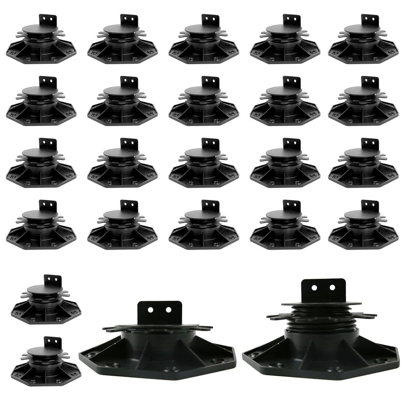 - resistant polypropylene, ouradjustable deck support base offers exceptional strength and longevity for extended use. It maintains its structural integrity in most conditions, the unique composition of this lightweight yet robust material addressing the installation challenges posed by traditional concrete bases' excessive weight. ăFlexible Height AdjustmentăThe screw ring mechanism in these deck pedestals enables height adjustment ranging from 1